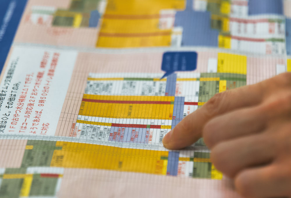 そのうえで、毎日のスケジュールを細かく組み、各職員がその通りに動くようにしたのです。初めは職員の戸惑いも強く、変化することの辛さもあったと思います。でも、突発的なことがあってもスケジュール表を見れば「こうやって動けばいいのか」と納得できるので、半年ほどでスムーズに動けるようになりました。